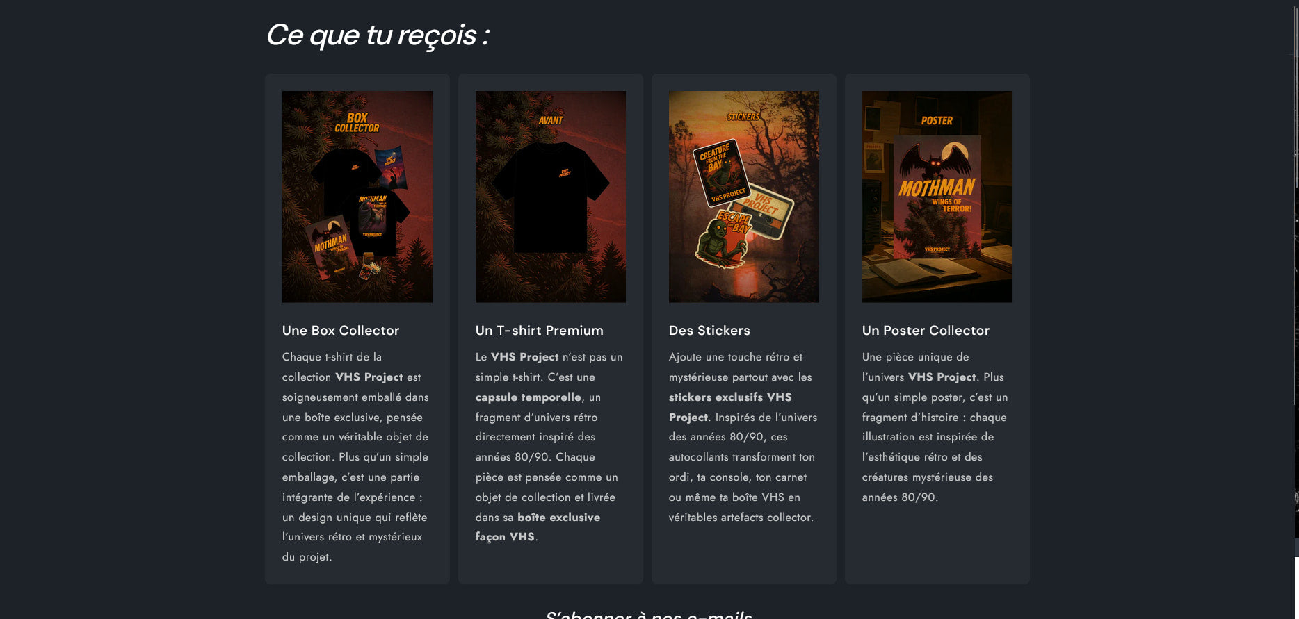 La cohérence de l'identité visuelle et le design épuré de la boutique ont permis à VHS Project de se démarquer immédiatement.